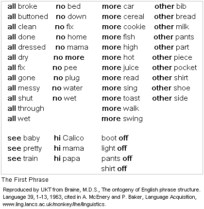 From Early Language Development in Full-Term and Premature Infants by P. Menyuk, J.W. Liebergott, and M.C. Schultz (1995). ISBN 0-8058-1773-5. www.writing.berkeley.edu/TESL-EJ