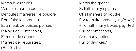 The second half of the book is more interesting and original. It contains an alphabetically arranged series of vignette portraits, mainly of trades-people, such as 'Agnes our maid', 'Colard the goldsmyth', 'David the bridelmaker', 'George the booke sellar' and the following extract concerning 'Martin the grocer':