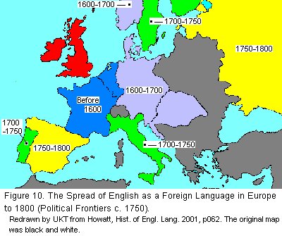 UKT: It should be noted that George I of Britain was German to boot. He was imported from Germany to be placed on the British throne. At age 54 he was too old to learn the language of his subjects, but his accession to the British throne and events leading to it would have raised an interest in the English language in Europe especially in France and Germany.