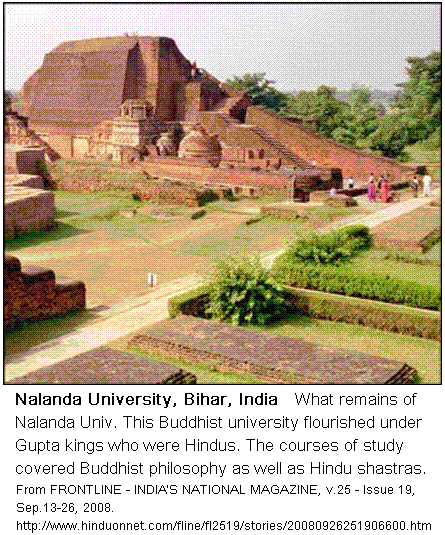 UKT: [Though the kings of the Gupta period were Hindus, they patronized Buddhism: it is during this period that the Buddhist Nalanda University flourished in Bihar, India. - UKT101118