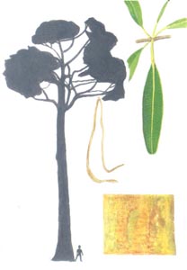 A large tree whose latex and bark have medicinal properties. The latex is white