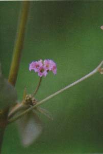 • Plant: a perennial herb from a fusiform root. Stem: prostrate, decumbent or ascending, 4-10 dm long, rather slender, divaricately branched. Leaves: opposite or sub-opposite, two of a node unequal, broadly ovate or suborbicular, obtuse to rounded or subcordate at the base. Flowers: in pendunculate, glomerulate clusters arranged in slender, long stalkcked, axillary or terminal corymbs. Obovoid or sub-ellipsoid, rounded above, slightly cuneate, below, broadly and bluntly 5-ribbed, very glandular throughout. Flowering and fruiting: throughout the year in Indian conditions -- www.hort.purdue.edu/newcrop/CropFactSheets/punanrnava.html