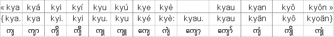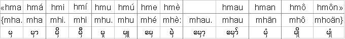 Thus, the usual way of transcription of{kha.} as <kha> implying the <h> to be a medial-former is not allowed, because <k> already has an element of aspiration and adding <h> again amounts to aspiration-over-aspiration. Therefore, the usual way of transcription of Burmese-Myanmar r1c2 akshara