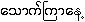 UKT: It is well to remember that Pali (and Sanskrit) which is also written in Myanmar script has only two "pitch-registers" described as "short" and "long". When Pali (and Sanskrit) and Burmese are presented together as in Buddhist texts or in texts on Astrology and similar disciplines, the speakers generally have trouble with the pitch registers. These inconsistencies, obviously, have been smoothed over among the Burmese population in Myanmar. It came as a shock to me to become aware of this situation when I started to discuss (in English) Buddhism (and Janism), and Astrology with some of my Indian friends in Canada. It dawned on me that the problem is because of the English transcriptions: the problem becomes less when we use the akshara-to-akshara transliteration. This has given me the impetus to go into cross-linguistic study using two sister scripts, Devanagari