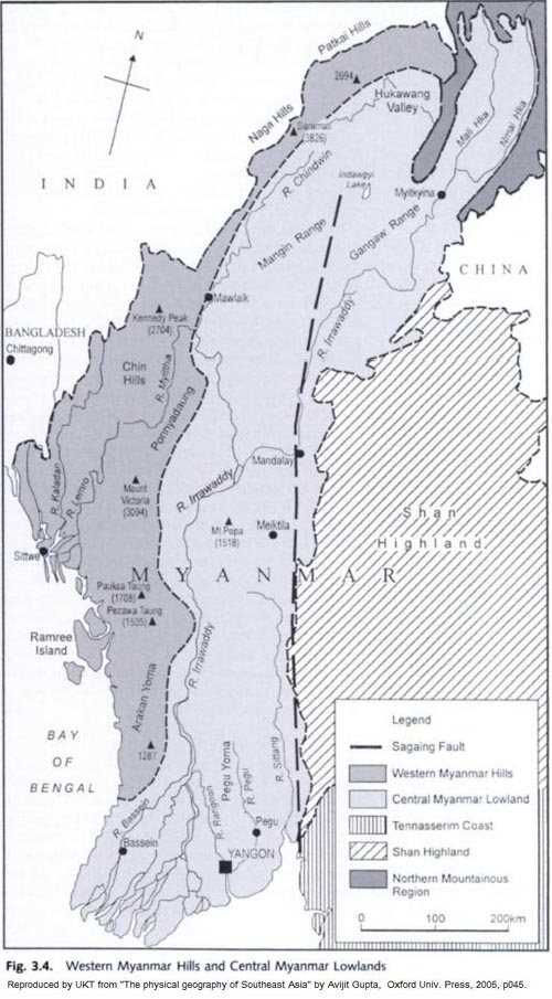 UKT: Pushing into the history of Myanmar as far back as possible, I have landed myself in the geological ages when presumably there were no humans as we know of them today. The following is from Physical Geography of Southeast Asia edited by Avijit Gupta, Oxford Univ. Press, 2005, ISBN 0199248028, 9780199248025, 440 pages