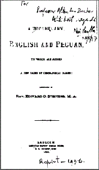 names , by Stevens, E.O., ABM Press, Rangoon,