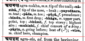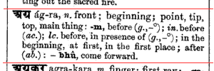PTS:-- ¹ (adj. n.) [Vedic agra; ... ]