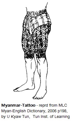 "Traditional Thai tattoos, known as Yantra tattoos, are believed to have strong magical powers. People get them for protection and good luck. Popular with soldiers, policemen, [professional wrestlers] and members of Thailand’s underworld, the tattoos are said to have the power to stop bullets and break knife blades. [UKT ¶]UKT 200402: Thai Yans have inscriptions in Myanmar aksharas because Thailand was a part of King Bayinaung's empire. Thai Yans and Myanmar Inns are almost the same. Here "knife blades" mean traditional military swords such as GnakKyiDaung
