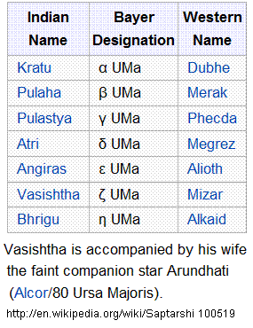 In Hindu astronomy the seven stars of the Saptarshi Mandal or Big Dipper or Ursa Major are named as :