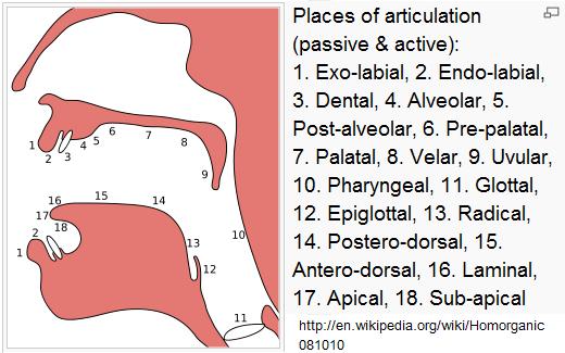 velar, uvular and pharyngeal places of articulation. Students learn their