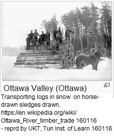 "The Ottawa River timber trade, aka the Ottawa Valley timber trade or Ottawa River lumber trade, was the nineteenth century production of wood products by Canada on areas of the Ottawa River destined for British and American markets." -- https://en.wikipedia.org/wiki/Ottawa_River_timber_trade 160116