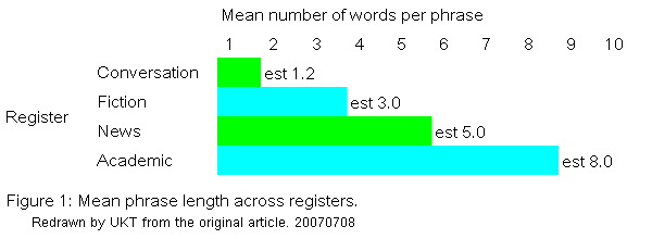 We find many such striking differences of frequency between the conversational subcorpus and the three written subcorpora -- but these differences of frequency would not have made any sense, had we not also recognized that the same categories occur across the spoken-written divide. Conversation makes use of entities such as prepositions, modals, noun phrases and relative clauses, just as written language does. So -- assuming, as many would, that differences of frequency belong to the use of the grammar, rather than to the grammatical system itself -- it is quite natural to think in terms of one English grammar, whose use in conversational performance can be contrasted with its use in various kinds of writing. In other words, conversational grammar is seen to be just a rather special implementation of the common grammar of English: a discovery which does not necessarily in any way diminish the interest of studying the grammar (i.e. the grammatical use) of spoken language.
