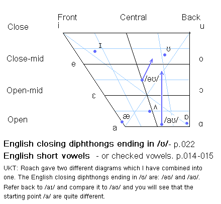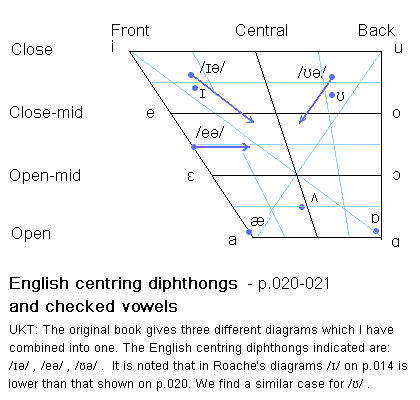 based on Peter Roach. English Phonetics and Phonology, a practical course. 2nd ed., 4th printing 1993, Cambridge University Press. ISBN 0-521-40718-4. pp 262 . For my reference, the printed book was digitized (type-copied) by Daw Khin Wutyi, B.Sc., TIL Computing and Language Center, Yangon, Myanmar. 2009. Page references to the original book are shown in my text for easy reference.