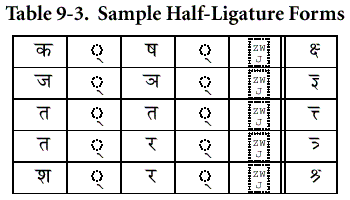 The Unicode Standard encodes Devanagari characters in the same relative positions as those coded in positions A0-F416 in the ISCII-1988 standard. The same character code layout is followed for eight other Indic scripts in the Unicode Standard: Bengali, Gurmukhi, Gujarati, Oriya, Tamil, Telugu, Kannada, and Malayalam. This parallel code layout emphasizes the structural similarities of the Brahmi scripts and follows the stated intention of the Indian coding standards to enable one-to-one mappings between analogous coding positions in different scripts in the family. [UKT¶]