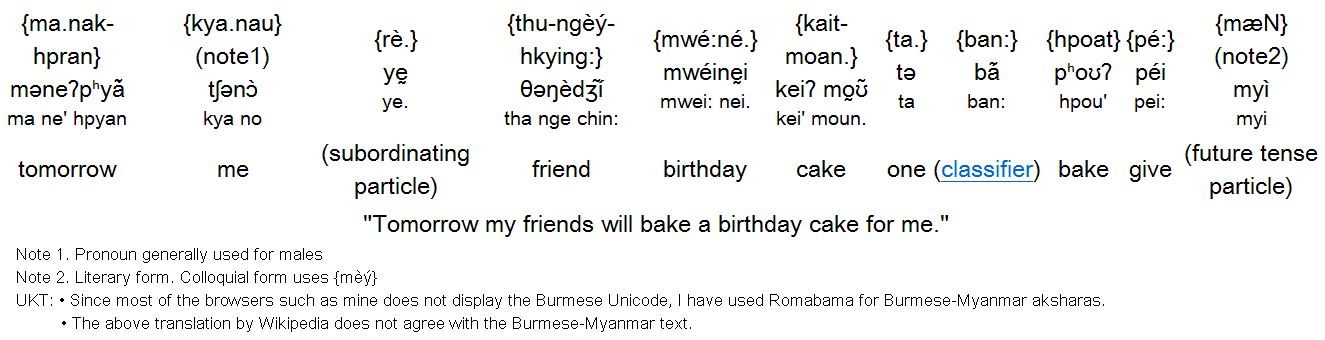 UKT: Another language group with a similar acronym is Austro-Asiatic, of which Mon-Myan (Mon speech in Myanmar akshara) is of interest to us. -- UKT101207