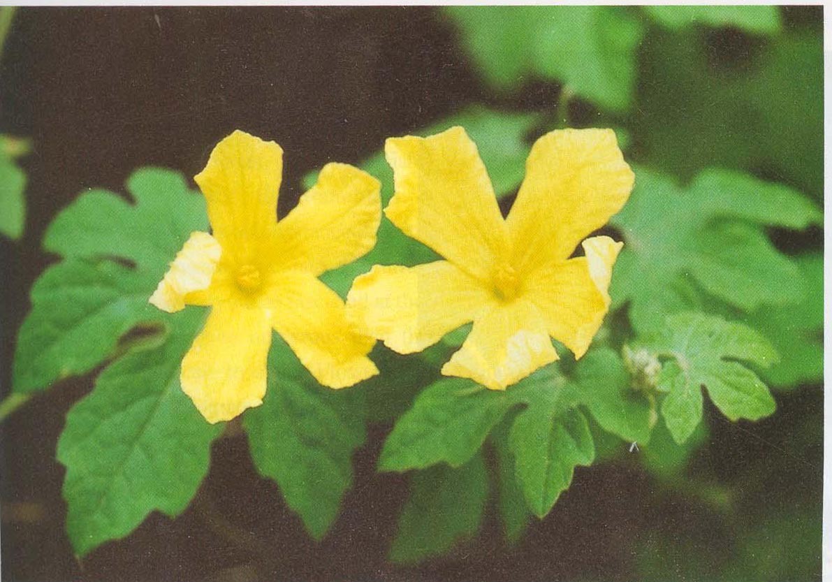 • An annual with long stem, much branched angled and grooved, more or less pubescent tendrils simple, slender, elongate, pubescent leaves deeply divided into 5-7 lobes, monoecious, petals yellow. -- UHM