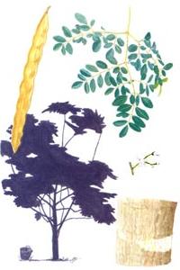• Key characteristics: Shrub or small tree; umbrella-shaped crown; bark corky or gummy; deciduous; oddly bi- or tri-pinnate leaves 20–70 cm long; leaflets ovate, 1–2 cm long, whitish below; seed pods 15–45 cm long, with 9 ribs and 3 valves; white fragrant flowers. Description: A fast growing deciduous shrub or small tree up to 12 m tall and 30 cm in diameter with an umbrella-shaped open crown (unless repeatedly coppiced). The bark is corky and gummy. Leaves are alternate, oddly bi- or tri-pinnately compound, triangular in outline and 20– 70 cm long. Each pinnae has 3–9 pairs of 1–2 cm long ovate leaflets, soft dark green above and whitish below. The white, fragrant flowers are in pendulous panicles 1.5–2 cm long from leaf corners. The fruit pods are 15–45 cm long, 9-ribbed capsules opening by three valves to release the 3-winged seeds. -- FAO