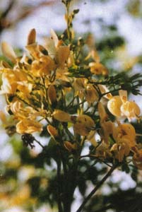 • A small or medium-sized tree, bark corky, wood soft, young parts tomentose, leaves 30-60cm., usually 3-pinnate, flowers white, honey-scented, fruit a pendulous 9-ribbed pod. -- UHM