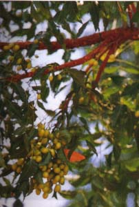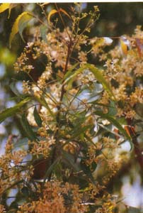 Parts used and uses: Metrorrhagia; Emesis; Oedema: Leprosy; Infections; Carbuncles; Loss of appetite; Fatigue; To allay thirst; Cough; Antidote for poisons; Heal sores; Pyrexia. Twig -- Cough; Asthma; Haemorrhoids; Abdominal tumours; Infections. Leaf -- Haematemesis; Opthalmia; Leprosy; Infections; Loss of appetite; Biliousness; Good for eyes; Astringent effect; Antidote for poisons. Flower -- Biliousness; Expectorant; Infections. Unripe fruit -- Leprosy; Abdominal tumours; Haemorrhoids; Infections. Ripe fruit -- Haematemesis; Opthalmia; Chest pain. Seed and oil -- Leprosy; Infections. Seed oil -- Biliousness; Carminative; Expectorant; Leprosy; Infections; Carbuncles; Haemorrhoids; Oedema; Biliary infection; Blood disease; Pyrexia