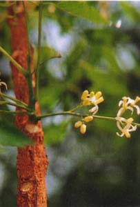 Parts used and uses: Haematemesis, Pyrexia; Leprosy; Emesis; Cholera; Heart; disease; Skin infection; Expectorant; Cause dehydration of the body; Haemorrhoid; Infections; Cough Burning sensation of the body; Antidote for rat bite poison. Leaf and flower -- Oedema during pregnancy; Menstrual disorder; Amenorrhoea; Diabetes; Lithiasis; Inflections; Epilepsy; Intestinal Colic; Haemorrhoid; Head-ache. Flower -- Scabies; Pruritis; Pimples; Skin disease. Seed -- Arthritis; Haemorrhoid; Polyuria; Muscle stiffiness; Destrution of hair follicles. Heart wood -- Osteoarthritis of the knee.