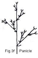 d. scorpioid cyme; e. thyrse; f. panicle;
