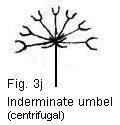 j. indeterminate umbel; k. spike; l. indeterminated head;