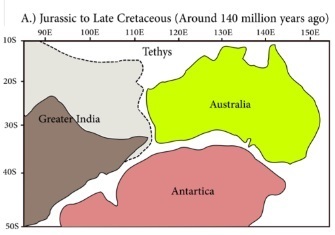 The India Plate departed from the Gondwanaland and headed northwards at a rate of 10cm/yr during the Cretaceous Period. [8]