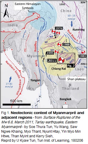 TIL11.^ Jump up to: a b c Wang, Yu; Sieh, Kerry; Tun, Soe Thura; Lai, Kuang-Yin; Myint, Than (2014-04-01). "Active tectonics and earthquake potential of the Myanmar region". Journal of Geophysical Research: Solid Earth. 119 (4): 2013JB010762. doi:10.1002/2013JB010762. ISSN 2169-9356.
