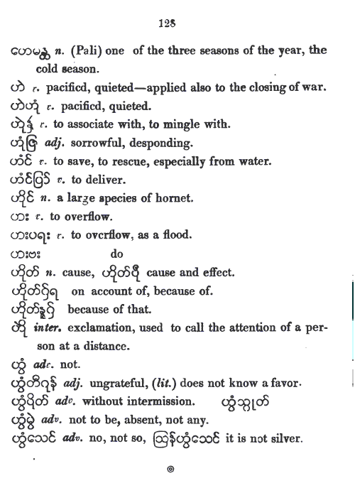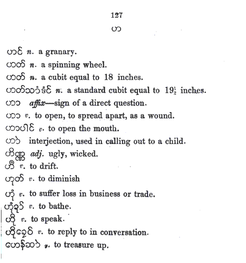 UKT 140605: The sound of {ha.} is articulated deep within the throat by both Bur-Myan and Mon-Myan speakers. It is without a definite POA (Point Of Articulation). It is also not a whispering sound sometimes called by the Westerners as "aspiration" or "breathing sound". It is an imbroglio and I need to study more and with my better understanding this note of mine is bound to change.