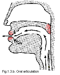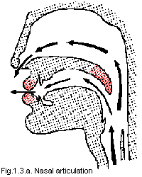 The sounds produced via the first method are called nasal; those produced the other way, oral. See Fig 1.3a and Fig 1.3b for details.