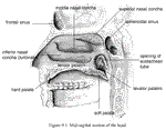 Sagittal section of nose, mouth, pharynx and larynx.