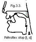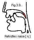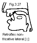 | [ ɭ ] | U026D Retroflex non-fricative lateral. The tip of the tongue curves up and back and its underside makes contact with the roof of the mouth. The sides of the tongue are lowered to allow the passage of air. Fig.3.27. (UNIL) |