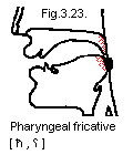 | [ ɬ ] | U026C Voiceless dental or alveolar lateral fricative. For the dental, the tongue tip makes contact with the inside of the upper teeth; for the alveolar, the tongue tip rests on the alveolar ridge. The tongue is strongly flexed and the air is forced through a narrow oval cavity, producing a hushing sound. Fig.3.26a and Fig.3.26b. (UNIL) |