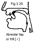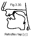 | [ ɾ ] | U027E Alveolar tap. The alveolar region serves as the target for the tongue tip, which vibrates there briefly before falling back to rest against the lower teeth. Fig.3.29. (UNIL) |
