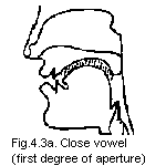 The descriptions of the vocalic articulations below are grouped according to the following principle: an initial classification is made based on degree of aperture; within each group, the vowels are then divided according to mouth shape (see Vowel Lip Postures), and then as rounded or unrounded. The study of nasal vowels is, for the meantime, outside the purview of this page.