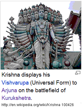 According to Puranic sources,[62] Krishna's disappearance marks the end of Dvapara Yuga and the start of Kali Yuga, which is dated to February 17/18, 3102 BCE.[63] Vaishnava teachers such as Ramanujacharya and Gaudiya Vaishnavas held the view that the body of Krishna is completely spiritual and never decays as this appears to be the perspective of the Bhagavata Purana. Krishna never appears to grow old or age at all in the historical depictions of the Puranas despite passing of several decades, but there are grounds for a debate whether this indicates that he has no material body, since battles and other descriptions of the Mahabhārata epic show clear indications that he seems to be subject to the limitations of nature.[64] While battles apparently seem to indicate limitations, Mahabharatha also shows in many places where Krishna is not subject to any limitations as through episodes Duryodhana trying to arrest Krishna where His body burst into fire showing all creation within Him.[65] Krishna is also explicitly told to be without deterioration elsewhere.[66]