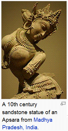 {dé-wa.}. Apsarā are dancers at Indra's court and belong to the Gandharva group: the males being musicians. They are court servants. See Wikipedia : http://en.wikipedia.org/wiki/Apsara 100212