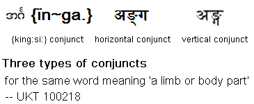 means 'ridden by a centipede'. On the right is shown three types of conjuncts